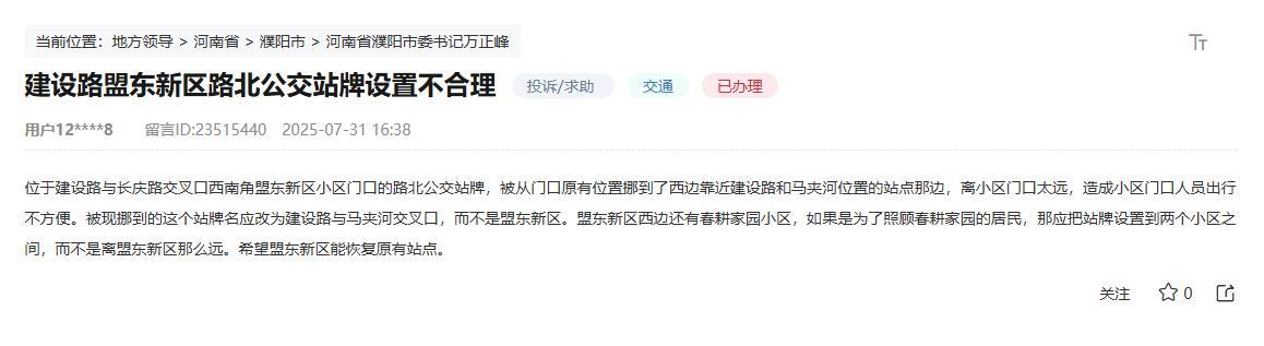 公共汽车停在社区,不希望居民乘公共汽车。我应该怎么办?最近,河南省Puyang City的网民遇到了这样的问题。消息的屏幕截图:“社区入口的公交车站被移至远离社区的地方,居民忙于旅行。如果它在乎春芬家庭居民,则应将该地点设置在两个社区之间,距离孟买新区不远。我希望恢复原始地点。”网民通过阳光(The -Day)“领导委员会”写下了他们的期望。倾听人民的声音并减轻他们的关注,并让他们的生计实现。为了应对群众报告的问题,Pyang Zhongyi Public Transpers Co,Ltd。关于大众的要求,该公司研究并决定增加一个“帮助站”,以使居民不难旅行。 Puyang Zhongyi公共交通有限公司在他的回应中说道路建设计划将建造一个在孟登新区Beimen West Road以北220米的公交港口。车站设施已经完成,它是公交车辆停车并离开乘客的车站。由于城市发展问题,它没有启用。在芒贡新区北门建立一个临时站的原因是孟多的新区的建设相对较早,并且在那个时候没有住宅区,道路宽阔且小型车辆,公共汽车安全风险的系数较低。在城市的发展中,周围社区的建设和移动居民的建设,旅行需求发生了变化。临时站的当前位置由交通管理部门的斑马穿越。当公共汽车停止时,它会影响行人而不是机动车辆,从而造成主要安全风险。基于所有因素,决定移动江户路贝蒙东nEW地区巴士站从北门临时站到孟东的新区,再到不活动的巴士庇护所。现在,由于一些居民报告说,搬迁站远离门口的新区域(实际距离约为220米),以促进公民前往该地区的旅行,并提高公交车服务的准确性和舒适性,因此研究后,该公司决定在孟强新地区增加一个“援助站”。当公共汽车居民骑车时,只有必要在车站的即将到来的车辆中休息一下,驾驶员在看到它们后会停下来接载。如果他们需要下来,他们也可以提前向驾驶员发出信号。下一步,该公司将继续提高服务效率,以确保人们旅行更方便,更舒适。